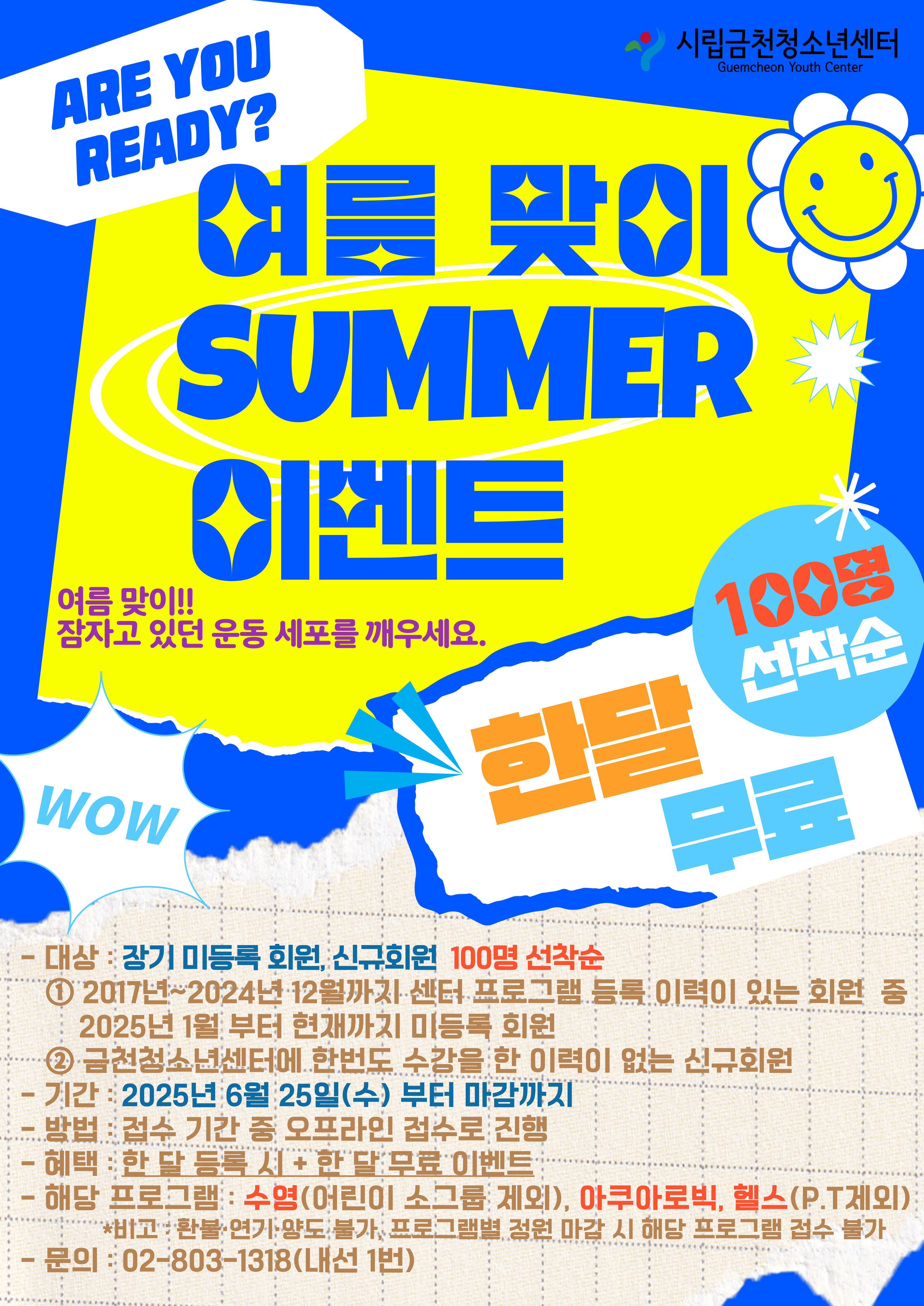2025년 여름맞이 시립금천청소년센터에서 빅썸머이벤트를 진행합니다!