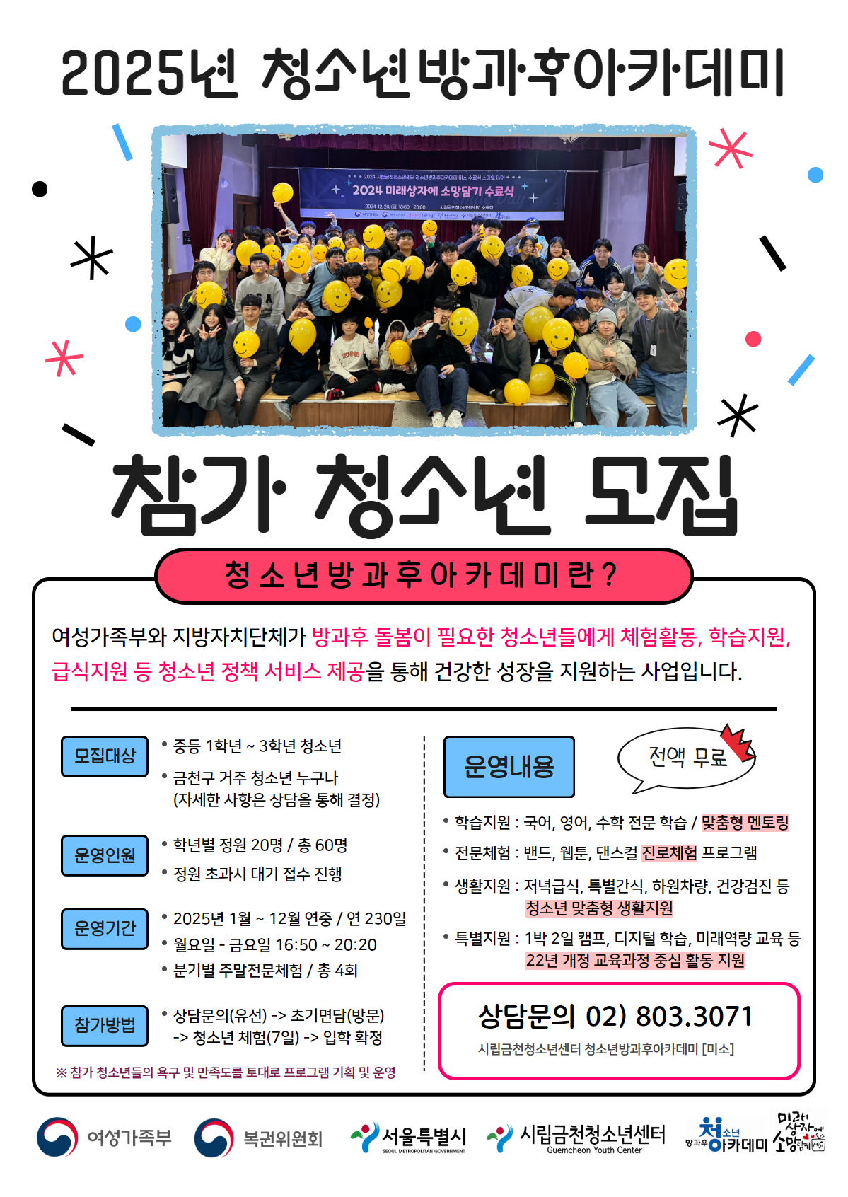 상담문의 : 02 - 803 - 3071 / 청소년방과후아카데미 사무실