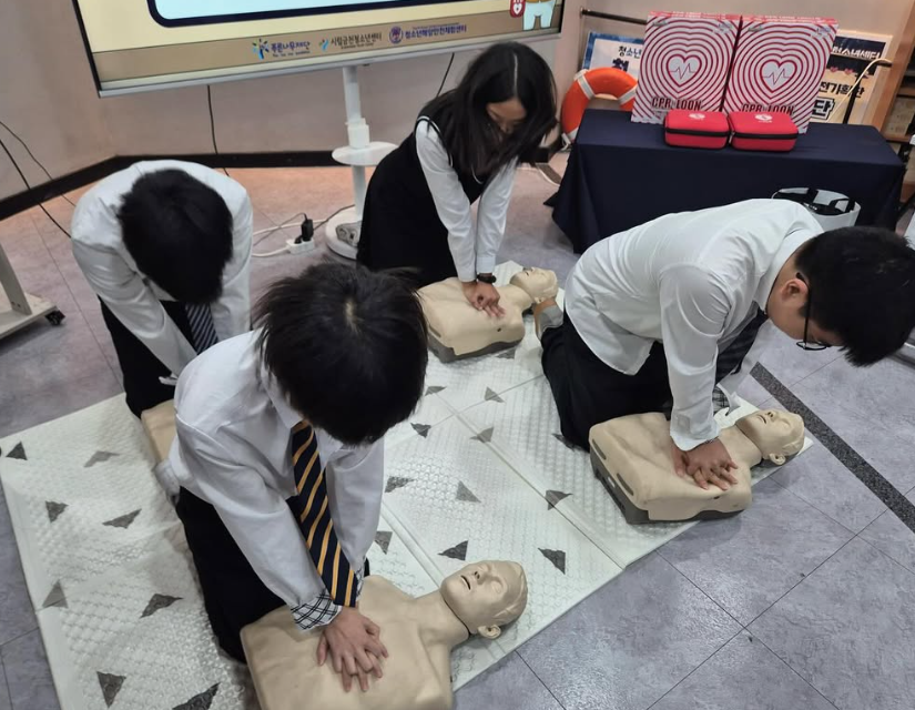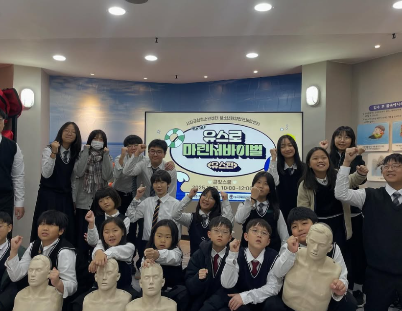11월 21일 오전에는 “큰빛스쿨” 학교의 초등 전학년과 중등 1,2학년 청소년을 대상으로 “유스로 마린서바이벌(유스편)”을 진행하였습니다!생존수영 실습교육을 한 뒤 안전퀴즈와 함께 심폐소생술 이론 및 실습교육도 진행하였습니다!